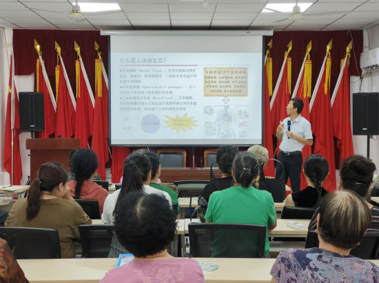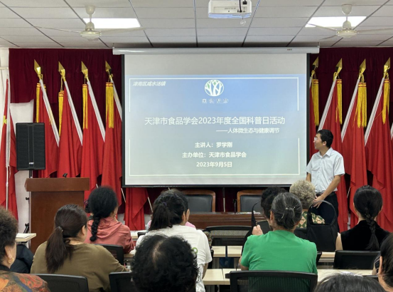 2023年9月5日上午,天津市食品学会常务理事、天津科技大学生物工程学院院长、生物工程国家级实验教学示范中心主任罗学刚教授在咸水沽镇永安里社区开展了以“人体微生态与健康调节”为题的食品安全科普知识讲座。