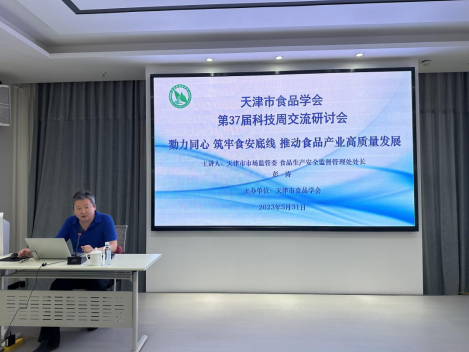 会议特邀天津市市场监管委食品生产安全监督管理处彭涛处长进行了“勠力同心 筑牢食安底线 推动食品产业高质量发展”的主旨报告,分别从提高规范化监管、提高许可工作效能、落实企业主体责任、排查风险隐患、推动产业高质量发展、构建食品安全共治共享新格局等十个方面,全面阐述了如何以食品安全“四个最严”为统领,以落实食品安全“两个责任”和防控食品生产安全风险为主线,切实筑牢食品安全民生底线,确保全市食品安全形势持续向好。
